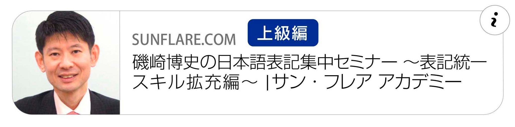 2024年11月30日(土)、翻訳学校サン・フレア アカデミー様主催による「磯崎博史の日本語表記集中セミナー 〜表記統一スキル拡充編〜」の講師を務めることになりました(2022年9月に続いて再開催します)。