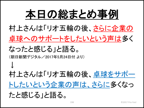 こちらは第3回(11月11日)に取り扱った実習テーマ(語法、語順、読点)の総まとめ。文章改善の実際を確認しました