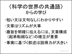 - 少しの書き加えや変更だけで文章を大きく改善できることがわかった、とても有意義なセミナーだった